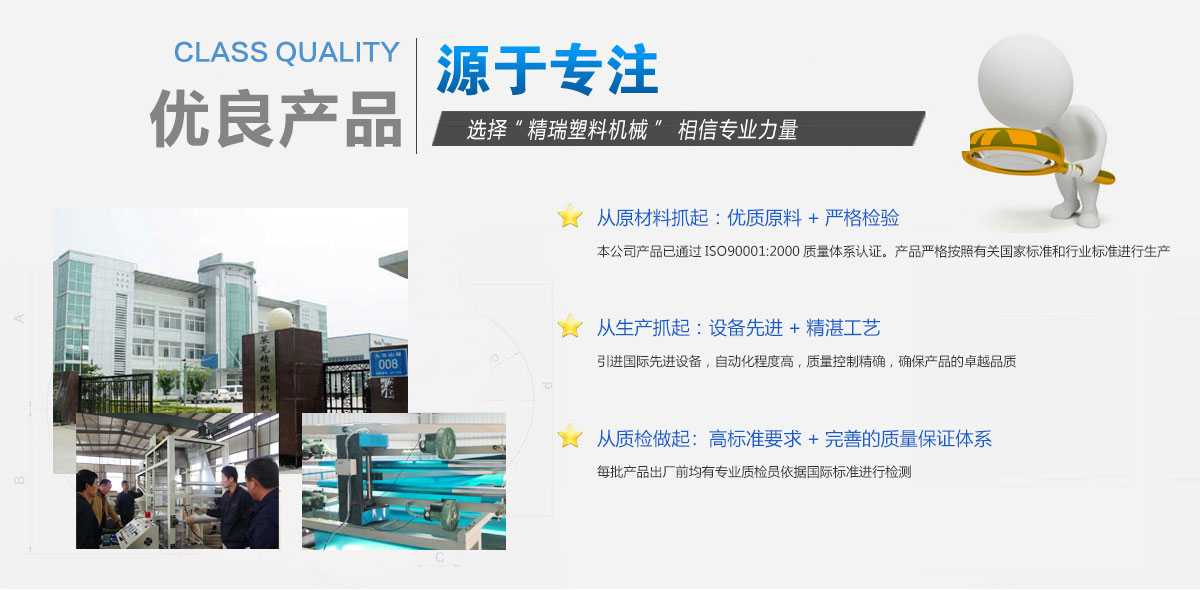 山東精瑞塑料機械有限公司是集研發、設計和生產管、膜、絲、帶、板、中空和電線電纜等塑料機械及塑料模具于一體的專業公司。公司匯集了一批專業的設計人員和研發人才,熟練的操作工人和經驗豐富的安裝調試人員以及專業化的售后服務隊伍,保證了產品的高品質、高性能,實現了快捷高效的售后服務。公司不斷研發新產品,產品暢銷全國二十幾個省、市、自治區,并出口俄羅斯、敘利亞、新加坡、非洲和東南亞等地區,公司擁有自營進出口權。